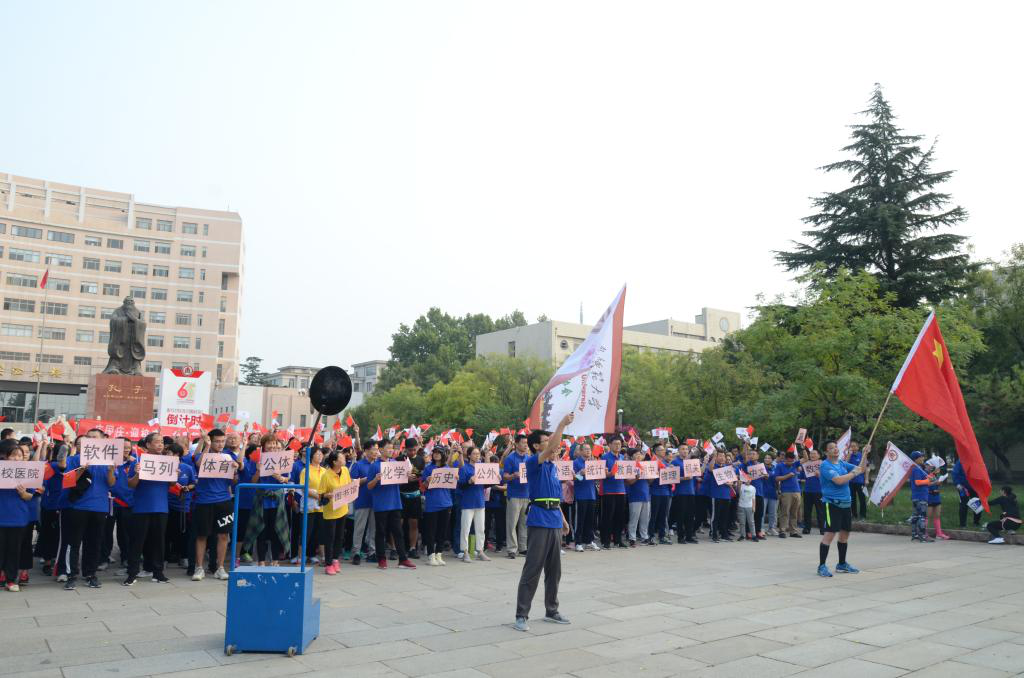 庆祝新中国成立71周年、曲阜师大建校65周年,展示曲园教工“团结、奋进、积极、创新”的精神风貌,10月1日上午,华体买球_华体(中国)多位教师参加华体买球_华体(中国) “庆国庆·迎校庆”马拉松比赛暨环校园走活动。秉承“犁牛之子”的精神,健步行走在金秋十月阳光明媚的曲园,用活力的汗水记录曲阜师大65周年校庆的光辉历程。通过校园马拉松活动,老师们强身健体,以饱满的热情和精神投入大学英语教学,以实际行动共祝祖国华诞。