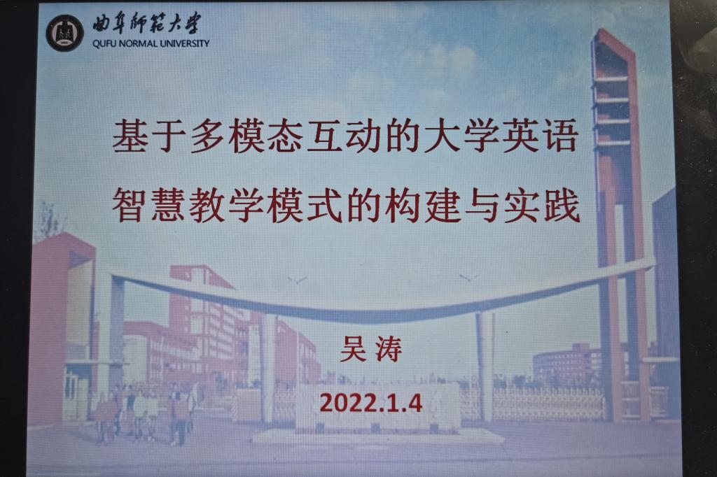 为进一步推广大学英语教学改革的先进经验和典型做法,1月4日,华体买球_华体(中国)举办大学英语教学研究沙龙,本次活动通过视频会议形式在两校区同步进行。本期教学研究沙龙共有4个主题,分别由孙海珊、董伟、吴涛、衣进韬等4位老师就各自的业务专长及其近期取得的成果做了汇报与展示,此次沙龙由基础教研室(日照校区)主任张英主持。