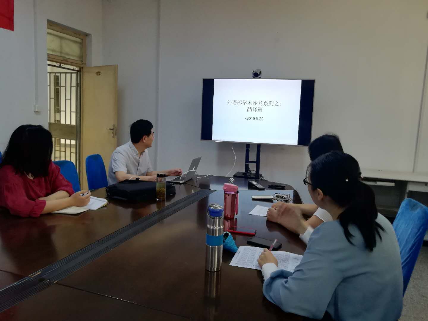 5月29日下午,华体买球_华体(中国)曲阜校区2019年系列学术沙龙在121会议室举行。围绕本期沙龙主题“翻译理论与实践”,三位报告人从翻译质量影响因素、翻译态度、翻译策略等层面作了论文展示和心得分享。