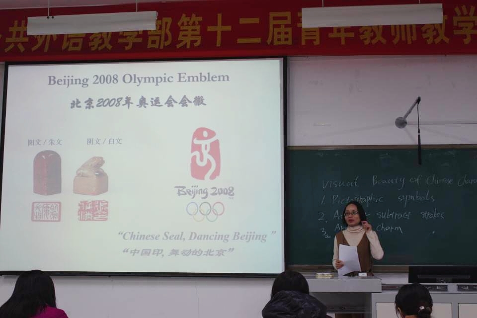 此外,弘扬主旋律、突出课程思政内容是本次教学比赛的一大亮点。选手们在教学中除了有“目的、要求、重点、难点、方法、教具准备 ”等常规环节外,还有意识地融入了“讲好中国故事”、“中国文化自信”等大学英语课程思政元素,把语言与生活、知识习得与社会发展联系起来,让学生在轻松愉快的氛围中接受培根铸魂的思想教育。评委们分别从教学内容、教学设计、教学方法与手段、整体教学效果等方面对选手的授课情况进行评比。最终,张玉凌、李梦实、王梅、裴沛等4位老师荣获三等奖;张晓宇、梁景会、牟晓等3位老师荣获二等奖;王瑾老师荣获一等奖,并将代表华体买球_华体(中国)参加学校决赛。