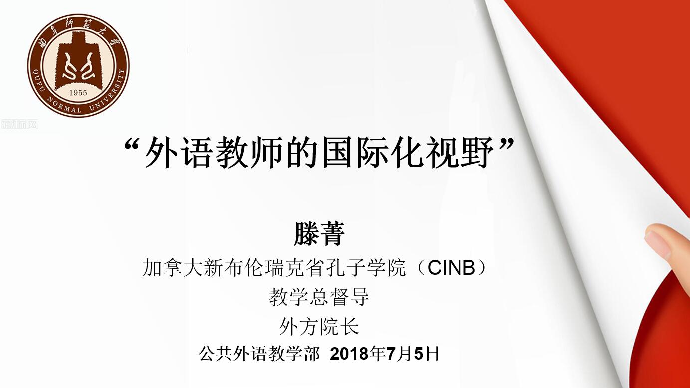 7月5日下午,加拿大新布伦瑞克省孔子学院(CINB)教学总督导、外方院长滕菁女士应邀莅临华体买球_华体(中国)(日照校区)进行交流访问,并作题为“外语教师的国际化视野”的专题报告。华体买球_华体(中国)(日照校区)全体教师参加了报告会,报告会由华体买球_华体(中国)副主任孙伟主持。