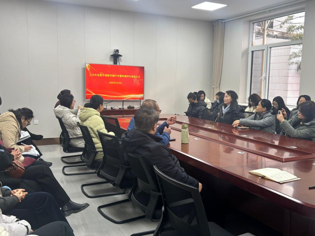 在会议第二阶段,王福祥就学校关于开展师德师风建设和校园安全工作会议精神作了全面传达,他重点对华体买球_华体(中国)新学期思想政治理论学习、师德师风建设、意识形态管控等方面任务作了深入分析和总体部署,他强调在新学期要持续加强全体教师意识形态教育,树牢意识形态红线底线意识,深入开展师德师风建设主题教育活动,切实提升全体教师“为党育人,为国育才”使命感与责任感,增强全体教师为国弘文的荣誉感,形成甘于奉献、风清气正、乐教爱生的良好师德师风新风尚;他要求全体任课教师在日常教学工作中要时刻拉直绷紧意识形态红线,立师表,铸师魂,强化课堂管理,规范师生交往,弘扬主旋律,传递正能量。此外,结合新学期教学科研等各项重点工作,他要求全体教师要高度重视课堂教学工作,精益求精,求真务实,切实提升我校大学英语课程教学质量,扎扎实实为我校人才培养工作做好基础性支撑工作;在此基础上,切实加大科研攻关力度,认真组织好各类重点课题申报工作,积极参加各类学术会议,培育更多高层次成果,实现高质量发展。