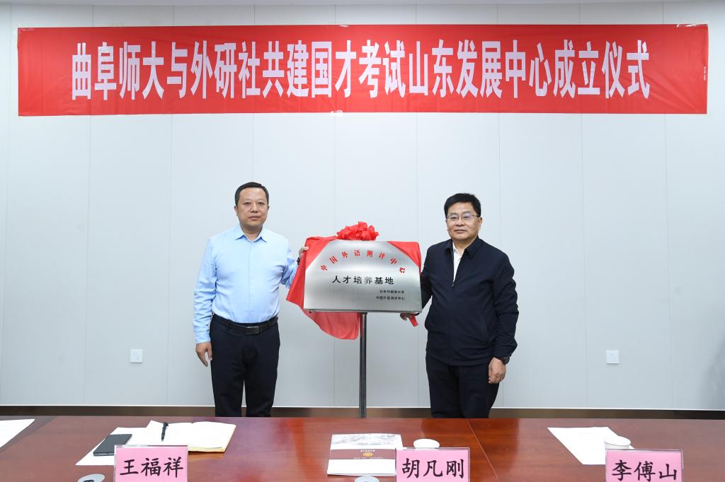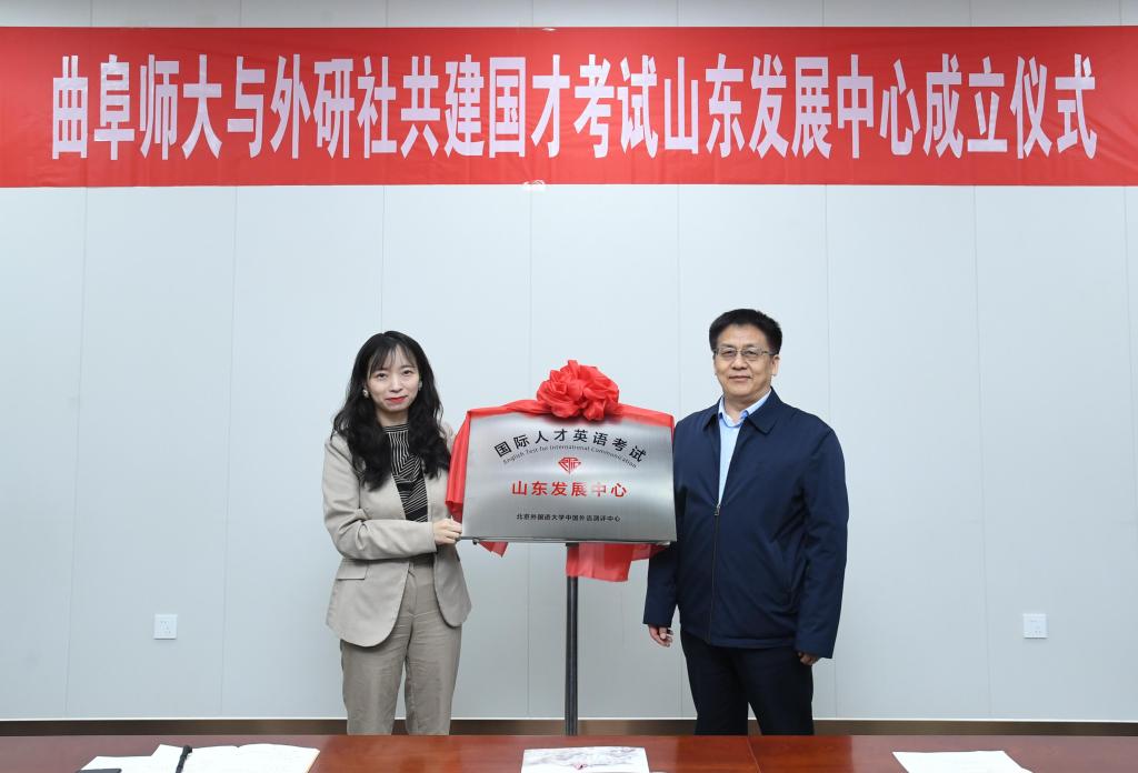 仪式上,胡凡刚副校长与冯涛总经理共同为“国际人才英语考试山东发展中心”揭牌,曲师大教务处处长李傅山与外研社高等营销中心华东大区总经理李洪旺为“华体买球_华体(中国)国际人才培养基地”揭牌。两大平台的成立,将为山东省高校国际化人才培养提供重要支撑。
